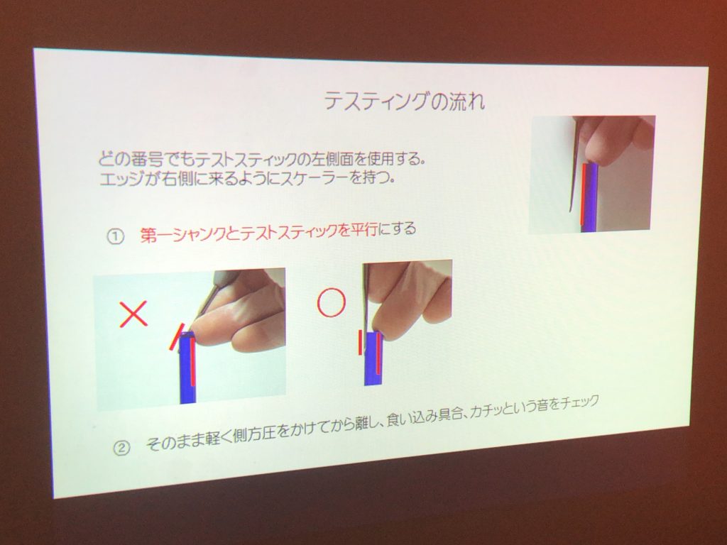 キュレットとは歯石とりに使う器具で、シャープニングとは刃を研ぐことです。